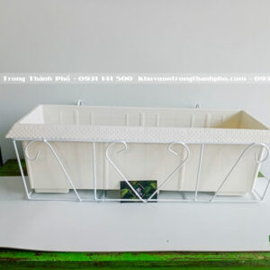 Bộ Khung Chậu Chữ Nhật 60cm phù hợp trồng những loại cây rũ, hoa treo ban công,….. Chậu nhựa chữ nhật có kèm khung treo giúp tiết kiệm diện tích, dễ dàng treo lên thành ban công.