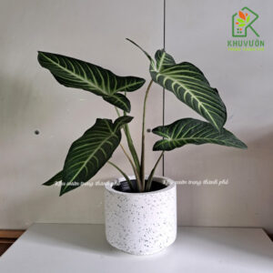 Với lá hình trái tim, màu xanh đậm và những đường gân trắng nổi bật, cây Lindenii không chỉ là một vật trang trí mà còn là một tác phẩm nghệ thuật sống động. Cây dễ chăm sóc, thích nghi tốt với môi trường trong nhà, giúp làm sạch không khí và mang lại cảm giác thư thái.