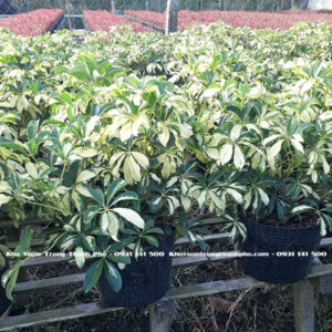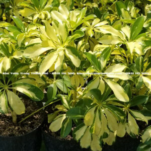- Tên khoa học: Schefflera arboricola ‘Variegata’ thuộc họ Araliaceae.