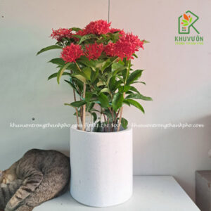 Cây trang mỹ đỏ trồng chậu đá mài trụ tròn 25cm - Thân cây chắc khỏe: Thân cây phân nhánh nhiều, tạo thành những bụi cây lớn, phù hợp trồng làm hàng rào hoặc điểm nhấn trong vườn.