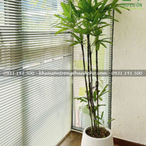 Chậu cây mật cật (trúc mây) chưng nội thất chăm sóc rất dễ. Dưới đây là một số bước bạn có thể thực hiện để chăm sóc cây: