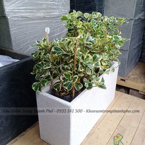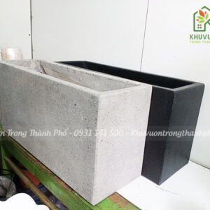Chậu xi măng đá mài 60x20x30cm có 3 màu: Xám, Đen, Trắng để khách hàng có thể lựa chọn màu phù hợp với màu nhà.