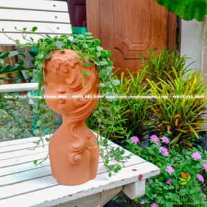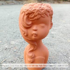 Chậu Đất Nung Cô Gái Tóc Mây thích hợp trồng cây rũ, sen đá, xương rồng, cây nội thất size nhỏ.