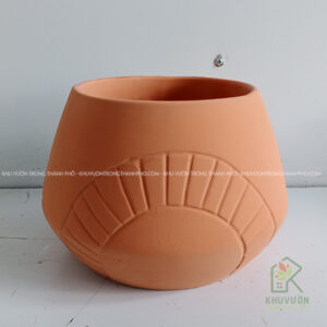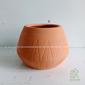Chậu Đất Nung Hình Chum in họa tiết hoa văn nổi đẹp và độc đáo, phù hợp trồng nhiều loại cây. Chậu đất nung giúp cây thoát nước tốt hơn,