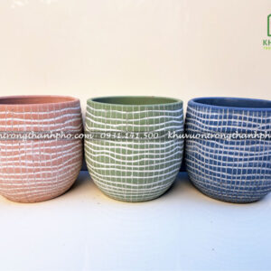 Chậu đất nung trứng sơn sọc có kích thước 14x14cm ( đường kính miệng x chiều cao) bụng 15cm