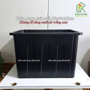 Chậu nhựa chữ nhật 50x34x35cm không có lỗ dùng để nuôi cá hoặc trồng cây thủy sinh.