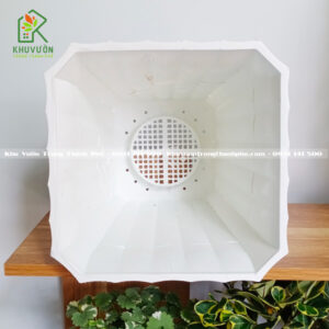 Chậu nhựa khía vuông thích hợp trồng các loại kiểng lá, cây để bàn, cây văn phòng, cây hoa bụi, hoặc để lồng khung sắt treo ban công. Chậu có kiểu dáng đơn giản, giá cả phù hợp nên được nhiều khách ưa chuộng.