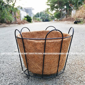 Chậu treo xơ dừa tròn 2T3 bao gồm giỏ sắt có chân đế, giỏ xơ dừa và dây xích treo. Chậu treo xơ dừa 2T3 thích hợp trồng rũ như trầu bà, thiên môn đông …. . Có thể gỡ móc treo để trồng hoa bụi, hoặc cây nội thất để bàn. Giỏ hoa treo xinh xắn, giúp cây thoát nước tốt, bảo vệ môi trường….