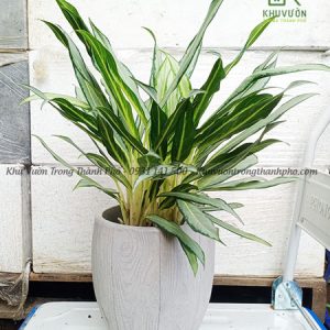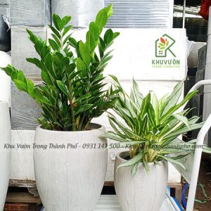 Chậu xi măng vân gỗ có kiểu dáng sang trọng, thích hợp trồng cây nội thất.