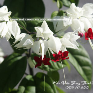 Hoa ngọc nữ mọc ở đầu cành và mọc thành chùm, phân màu trắng tinh khiết chính là đài hoa ôm lấy hoa đỏ rất đẹp.