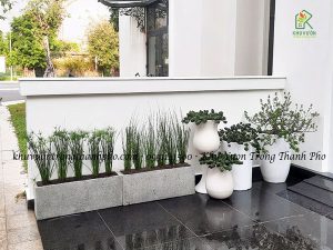 Chậu đá mài chữ nhật là mẫu chậu không thể thiếu trong trồng cây trang ...